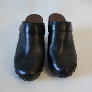 Womens Chanel Black Leather Wood Heel Studded Platform Mules Clogs 38.5 US/8