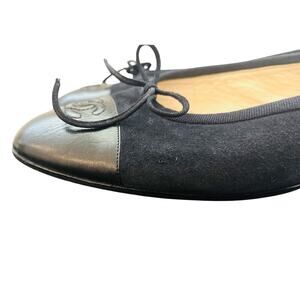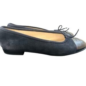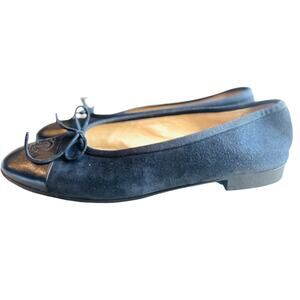 Women’s Chanel Blue Suede/Black Leather Ballet Flats size 40 - 100% Authentic