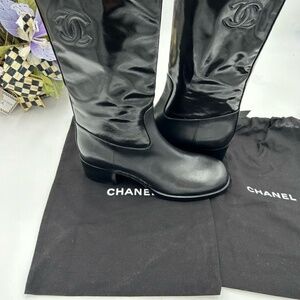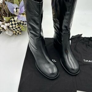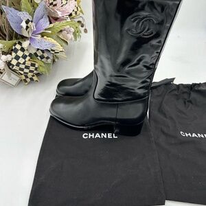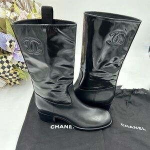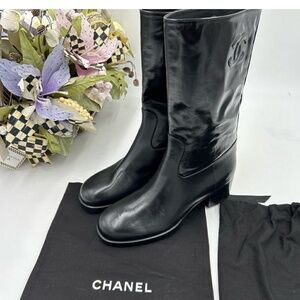 Women’s Chanel shiny calf skin CC mid calf boots size 36 made in Italy