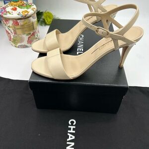 Women's Chanel ivory leather strappy sandals size 38.5 made in Italy