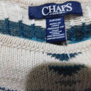An a attractive Aztec print sweater with cream background is knit and made of 57% cotton and 31% polyester and has a raglan style sleeve. Great for office wear or casual