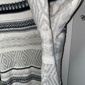 Women's Chaps Gray Black‎ White Cream Mock Neck Pullover Knit Stripe Sweater XL