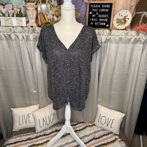 Women's Charcoal Gray Button-Up Top with Tie Detail Size XL