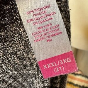 Size : tag says XXXL but it is more like an XL-2X (see measurements)