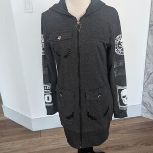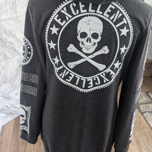 Elevate your style with this charcoal utility jacket featuring bold skull accents. Perfect for a chic, edgy look.