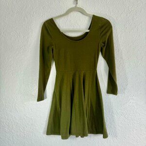 Womens Charlotte Russe Olive Green Long Sleeve Skater Flowy Dress XSmall