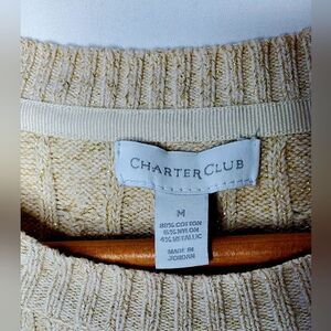 Women's Charter Club Cable Knit Crew Neck Sweater - Cream and Gold - Size Medium