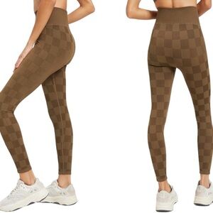 Women's Checker Mid Rise Leggings in Olive