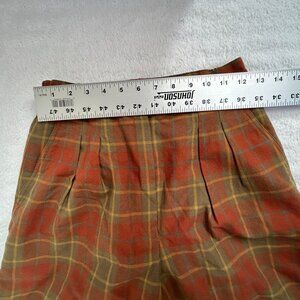 Women’s Checkered High Waist Pleated Shorts Red Brown Casual Lined Pockets 64-68 Waist