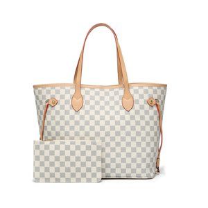 Womens Checkered Tote Shoulder Bag with inner pouch - PU Vegan Leather