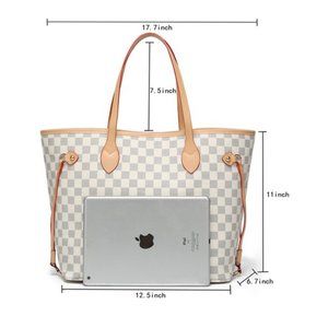 This Checkered tote bag is spacious enough to all you need for an every day use. The inner pouch is large enough to hold money, passport, cards and smart phones like the iPhone 7 or 8 plus, the Samsung Galaxy or any other phone of a similar or smaller size.