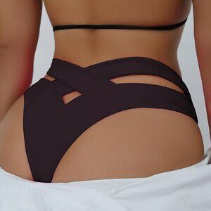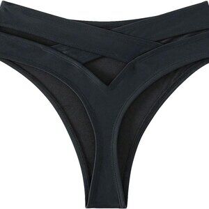 Features: Flattering high-waisted bikini bottom made from ultra-lightweight, soft fabric. Cheeky cut with criss-cross back details that elongate your legs and offer tummy control. The V-back design adds a stylish touch, with a double-layered construction and an elastic waistband that sits comfortably at the natural waist.