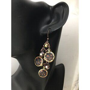 Beautiful Women's Cheetah Print Gold Tone Dangle Earrings