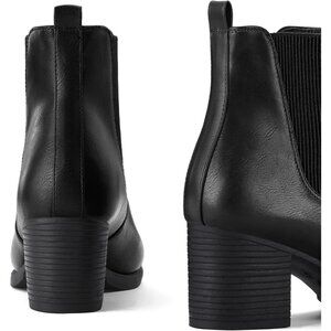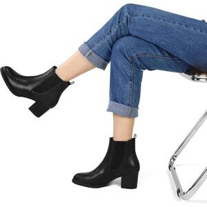 Features: Chunky heel ankle boots with slip-on design, elastic sides for easy wear, and a sleek, smooth PU finish that’s dirt-resistant. The 2.4-inch stacked heel and slip-resistant rubber sole add comfort and confidence, whether you're heading to a casual hangout or a casual workday. Shaft height is 4.5 inches with an 8.5-inch circumference, making them roomy enough without being bulky.