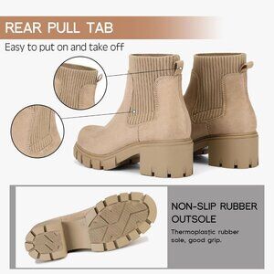Womens Chelsea Boots Elastic Ankle Booties Chunky Mid Heel Lug Sole Slip On Fall
