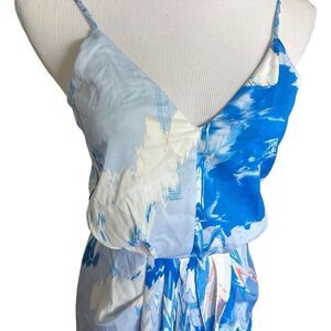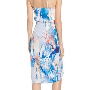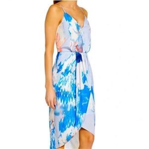 Womens Chelsea28 Spaghetti Strap FX Wrap Blue Watercolor Floral Print Dress Sz 2