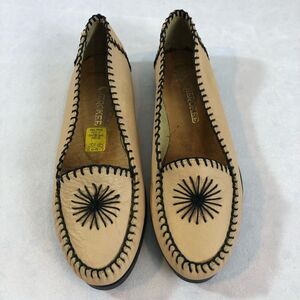 Cute women’s lightweight Cherokee tan loafers worn once decorative stitching on top and trim size 6.5 like new condition