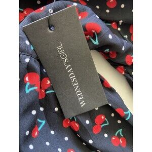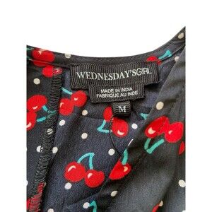 Womens Cherry Print Babydoll Mini Dress Size M Y2K Retro Kawaii Indie Sleaze 90s