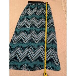 Women's Chevron Boho Print Sheer Maxi Skirt Stretch Waist Size 6. Like new condition. No holes or stains. Comes from a smoke free home. Measurements are in the photos. Waist is elastic so it gives some stretch. Sheer skirt but has a dark under layer (pictured)