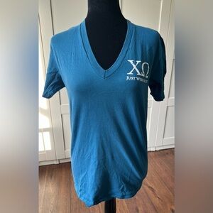 Women’s Chi Omega Sorority XO Philanthropy Make A Wish Teal T-Shirt Size Small