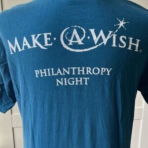 Show off your Chi Omega pride while supporting a great cause with this Philanthropy Make A Wish Teal T-Shirt in size small. The shirt features the XO symbol and vibrant blue color, made by popular brand American Apparel. It's perfect for any Chi Omega sister or fan who wants to make a statement.