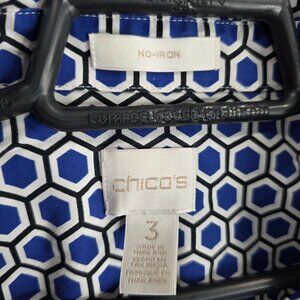 Womens Chicos Blue Hexagon Pattern Shirt No Iron Button Up Long Sleeve Size 3