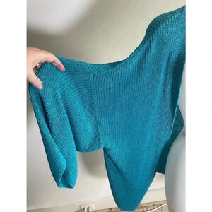 Women's Chicos Blue Oversized Batwing Sleeve Open Front Cardigan Sweater XXL 129