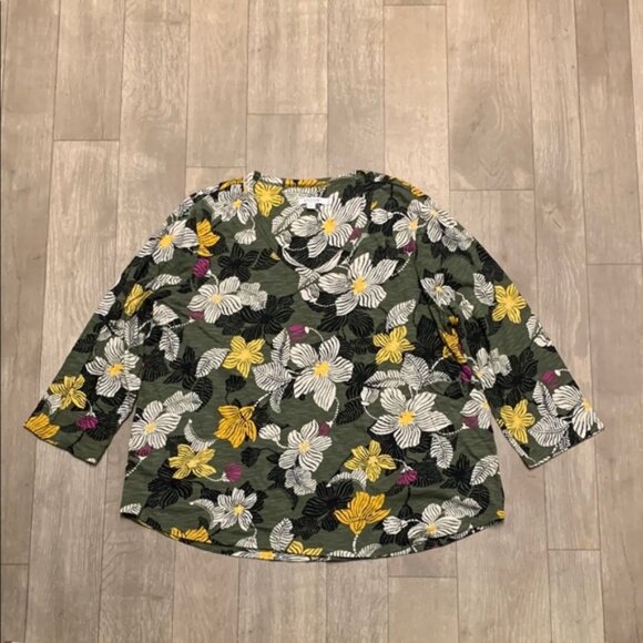 Womens Chico’s Floral All Over V-Neck‎ Top Shirt