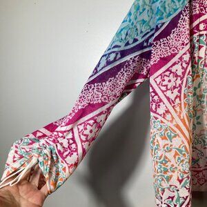 Womens Chicos Lightweight Open Cardigan Ruched Sleeves Medallion Floral M