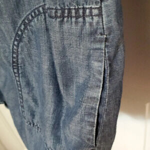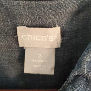 Womens Chico's Oversized Hidden Button Down Denim Shirt with 2 Side Pockets