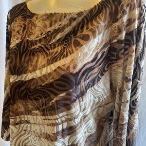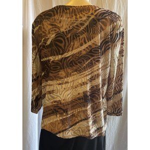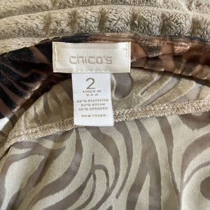 Womens Chico’s Size 2 Animal Print Pull Over Scoop Neck 3/4 Sleeve Blouse