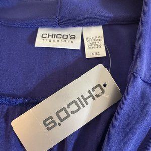 Look stylish on your travels with this beautiful royal blue jacket from Chico's. The open front design gives it a chic and effortless look that pairs well with any outfit. Made from high-quality acetate material and featuring a basic jacket style, this piece is perfect for any occasion, whether it's a casual day out or a formal event.