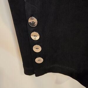 Excellent condition, women's Chico's "Travelers Collection" black, pull on, crop pants with button accents. These have an elastic waist and no pockets. These do stretch. The marks shown in the picture are the from the hanger.