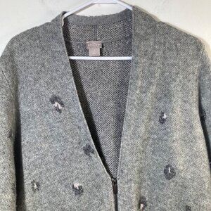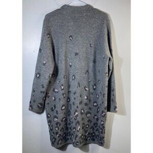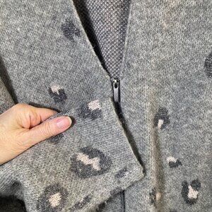 Womens Chicos Wool Blend Zip Cardigan Animal Print Gray Pink Metallic L