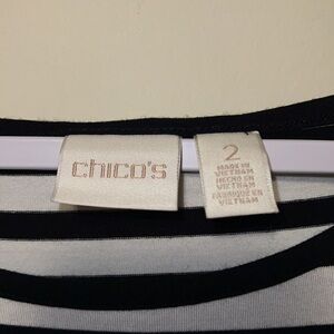 This is a Chico’s sz 2 striped stretchy tunic top in gently used condition