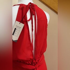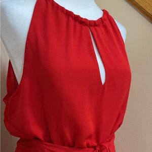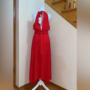Women’s Chiffon Dress Size Medium Red Belt Bandade Waisted Asymmetrical Cocktail