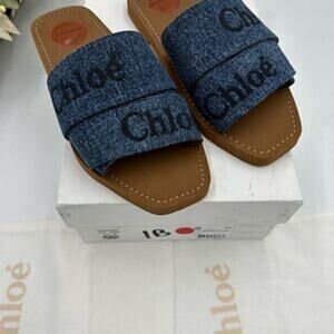 Women’s Chloe woody logo embroidered denim sandals size 38 made in Italy