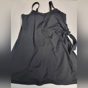 New Without Tags Land's End Women's Size 16 Chlorine Resistant Sweetheart Swim Dress One Piece With Adjustable Straps. 83% nylon 17% spandex. UPF50 Sun Protection, sewn in soft cup bra, flattering V-neck, nonfunctional side tie flatters and camouflage the mid section.