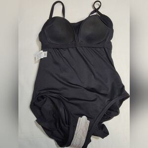 New Without Tags Land's End Women's Size 8 Chlorine Resistant Sweetheart Swim Dress One Piece With Adjustable Straps. 83% nylon 17% spandex. UPF50 Sun Protection, sewn in soft cup bra, flattering V-neck, nonfunctional side tie flatters and camouflage the mid section.