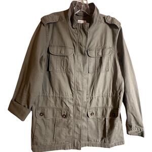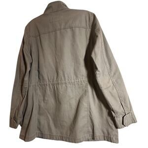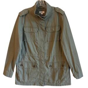 Women’s Chore Jacket Sz L Army Green Utility Drawstring Cotton Pockets Barn Work