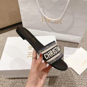 🦋🔥Women's Christian Dior Sparkly Dway Slide Black Sandals 🔥🦋