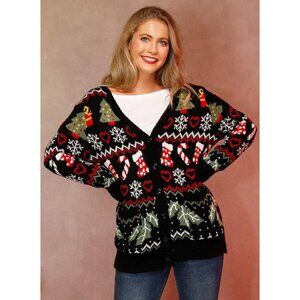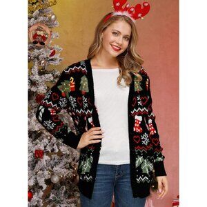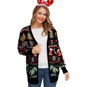 Womens Christmas Cardigan Funny Button Down Ugly Sweater with Pockets