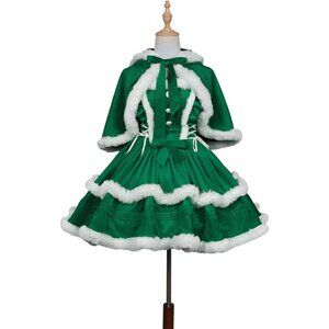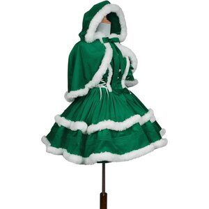 Women's Christmas Dress Skirt and Hooded Cloak Match