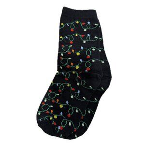 Women's Christmas Lights Socks Crew One Size Black Holiday