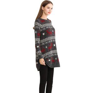 Reindeer Snowflake Midi Christmas Pullover Sweater Tunic — cozy holiday cheer!