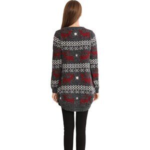 Features: This festive midi sweater is perfect for staying warm while spreading Christmas spirit. Soft, comfy knit with fun reindeer and snowflake patterns — easy to throw on for holiday gatherings or cozy nights in.