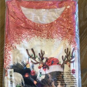 Womens Christmas Santa Squirrel Tangled in Lights Red Bleached T-Shirt. Brand new in original packaging. From smoke free home. * shirt only. No other items in photos included. * Stock photo color may appear slightly different from actual item due to lighting.