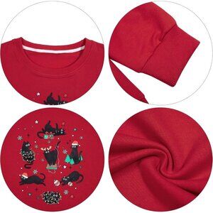 Features: Relaxed-fit Christmas sweatshirt featuring adorable cat-themed holiday design. Soft, stretchy fabric blend of cotton, polyester, and spandex feels great against the skin and allows for easy, comfortable wear. Perfect for staying warm during holiday gatherings or casual outings.