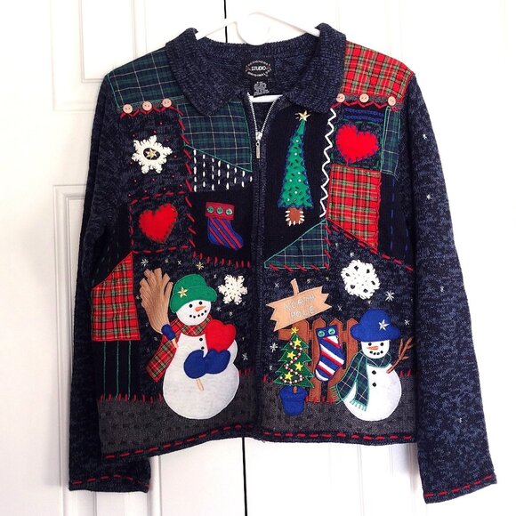 Women's Chritmas Sweater by Designer Studio Originals - Petite/Medium - Zip-Up
