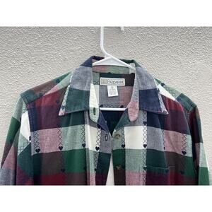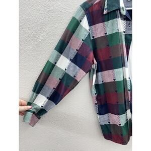 Womens Chrysantheme Plaid Button Up Long Sleeve with Built in Shirt Size Small